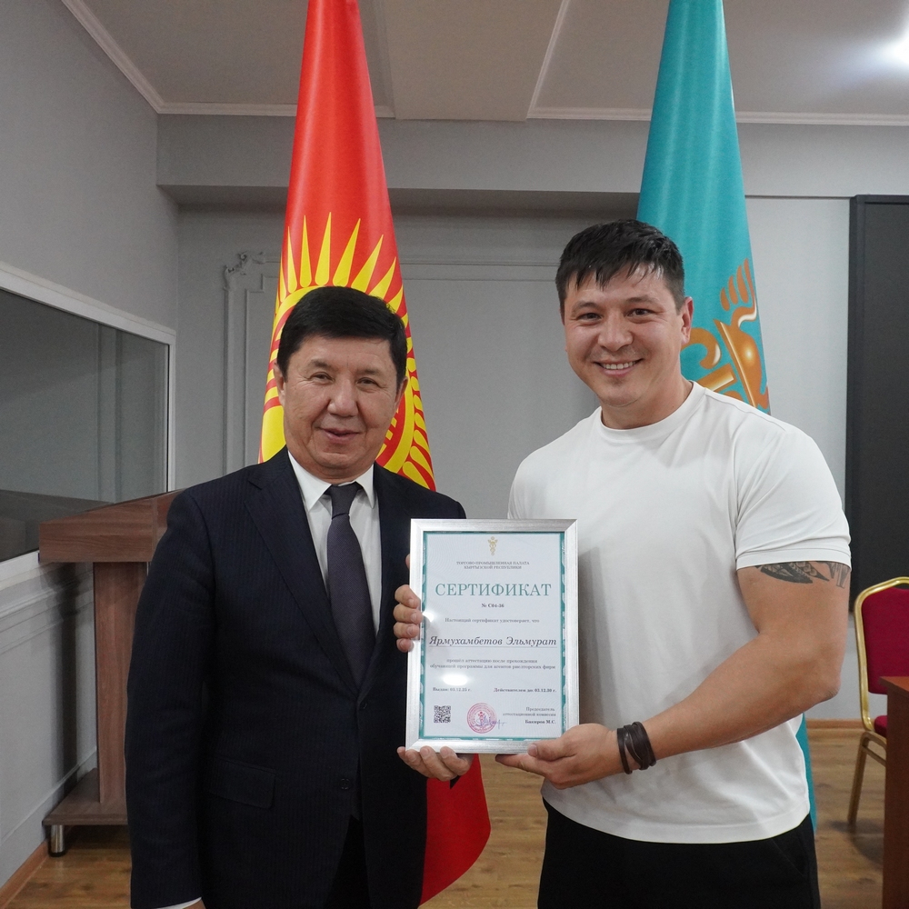 По итогам комплексной оценки выпускникам были вручены официальные сертификаты профессиональной квалификации. Торжественное вручение сертификатов провёл Президент ТПП КР Темир Сариев, отметивший важность формирования цивилизованного, открытого и профессионального рынка риелторских услуг.