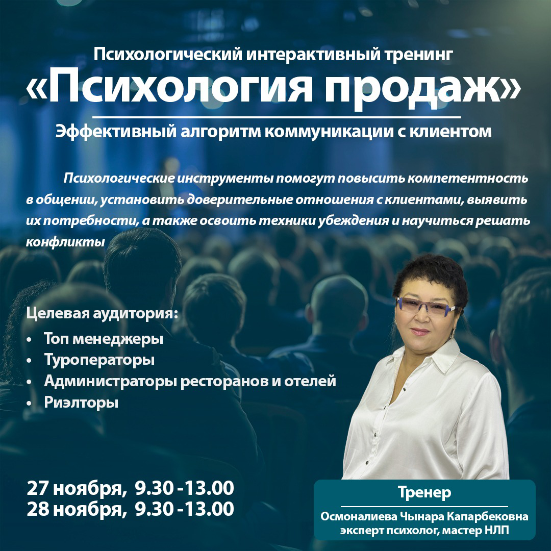 ТПП КР приглашает на психологический интерактивный тренинг «Психология продаж» (эффективный алгоритм коммуникации с клиентом)