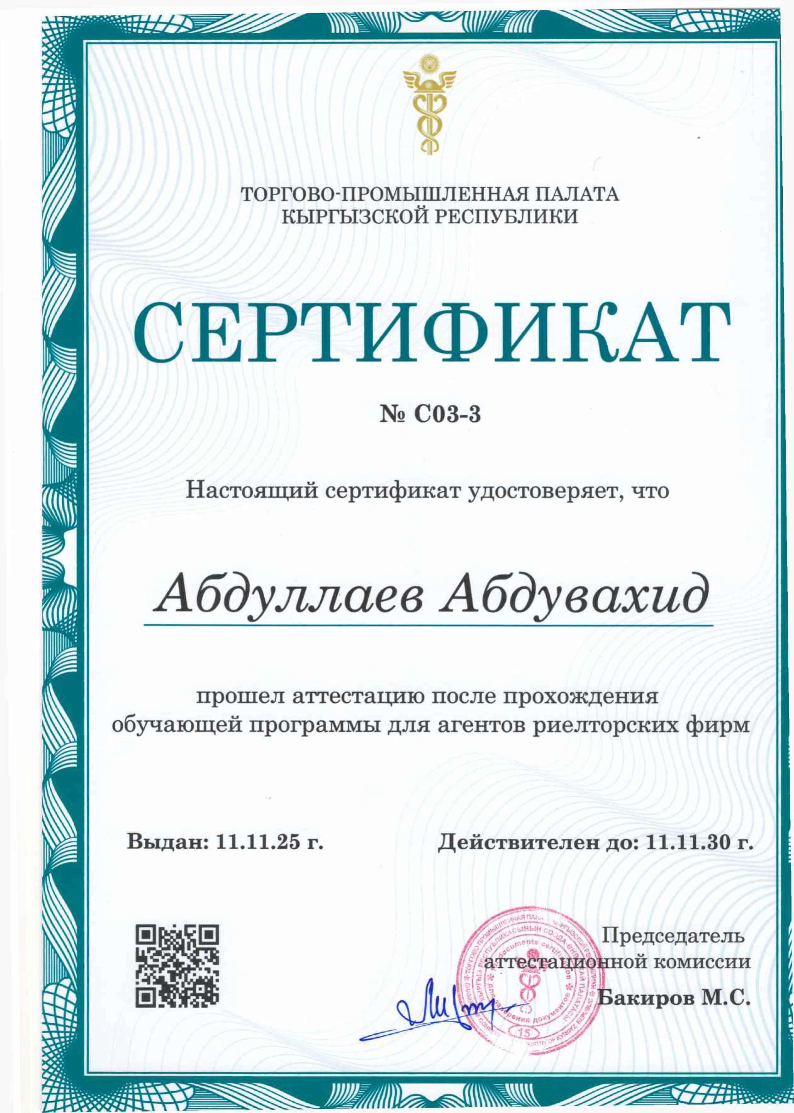Регистрационный номер сертификата о прохождении аттестации: № C03-3