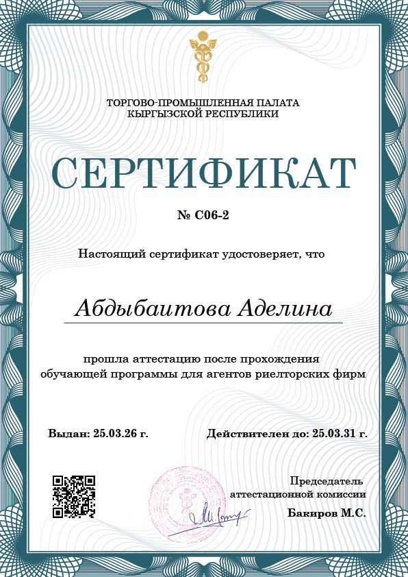 Регистрационный номер сертификата о прохождении аттестации: № C06-2