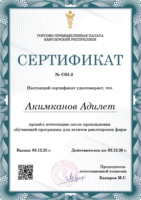 Регистрационный номер сертификата о прохождении аттестации: № C04-2