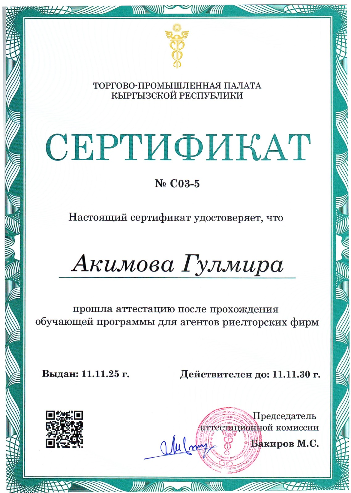 Регистрационный номер сертификата о прохождении аттестации: № C03-5