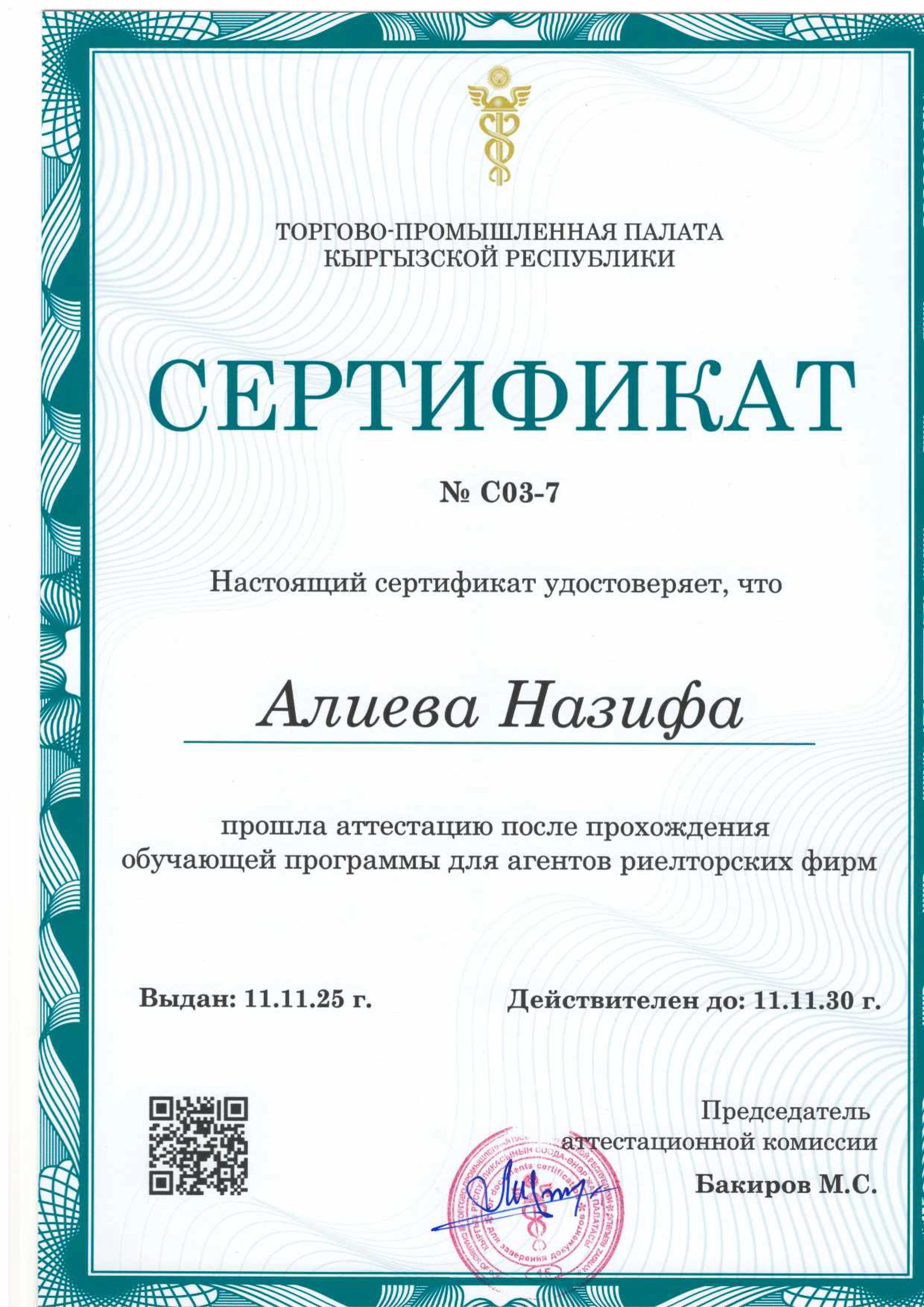 Регистрационный номер сертификата о прохождении аттестации: № C03-7