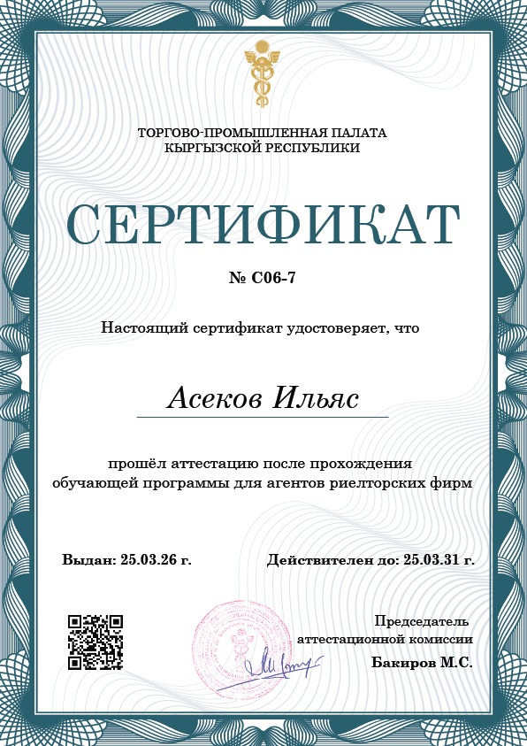 Регистрационный номер сертификата о прохождении аттестации: № C06-7