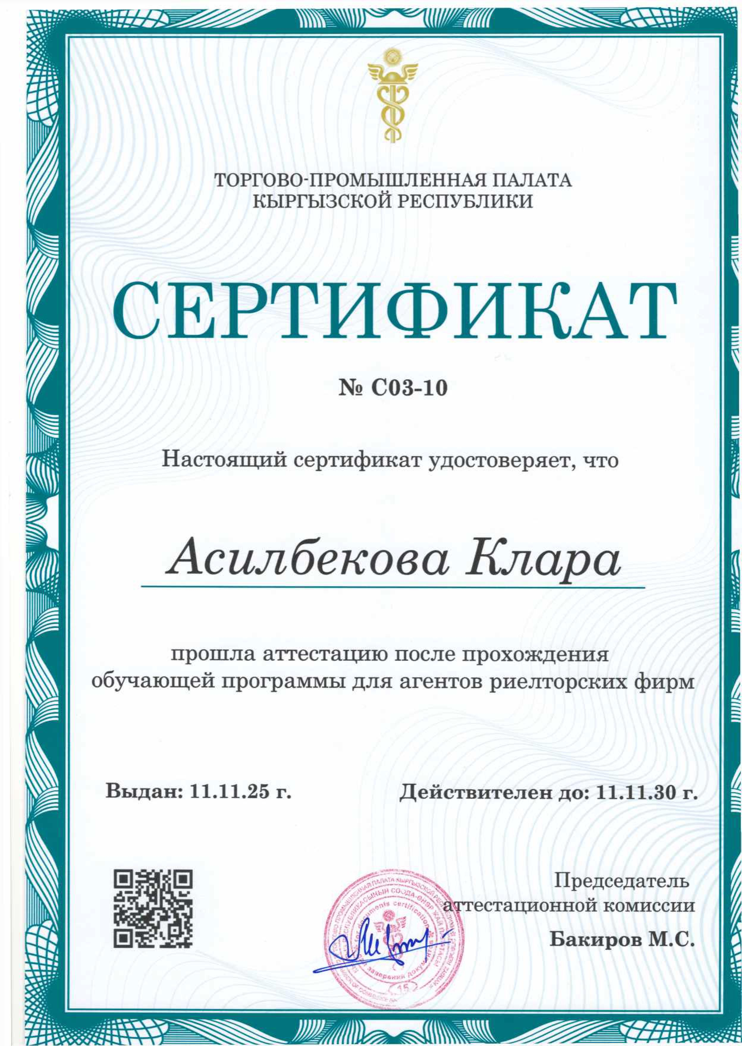 Регистрационный номер сертификата о прохождении аттестации: № C03-10