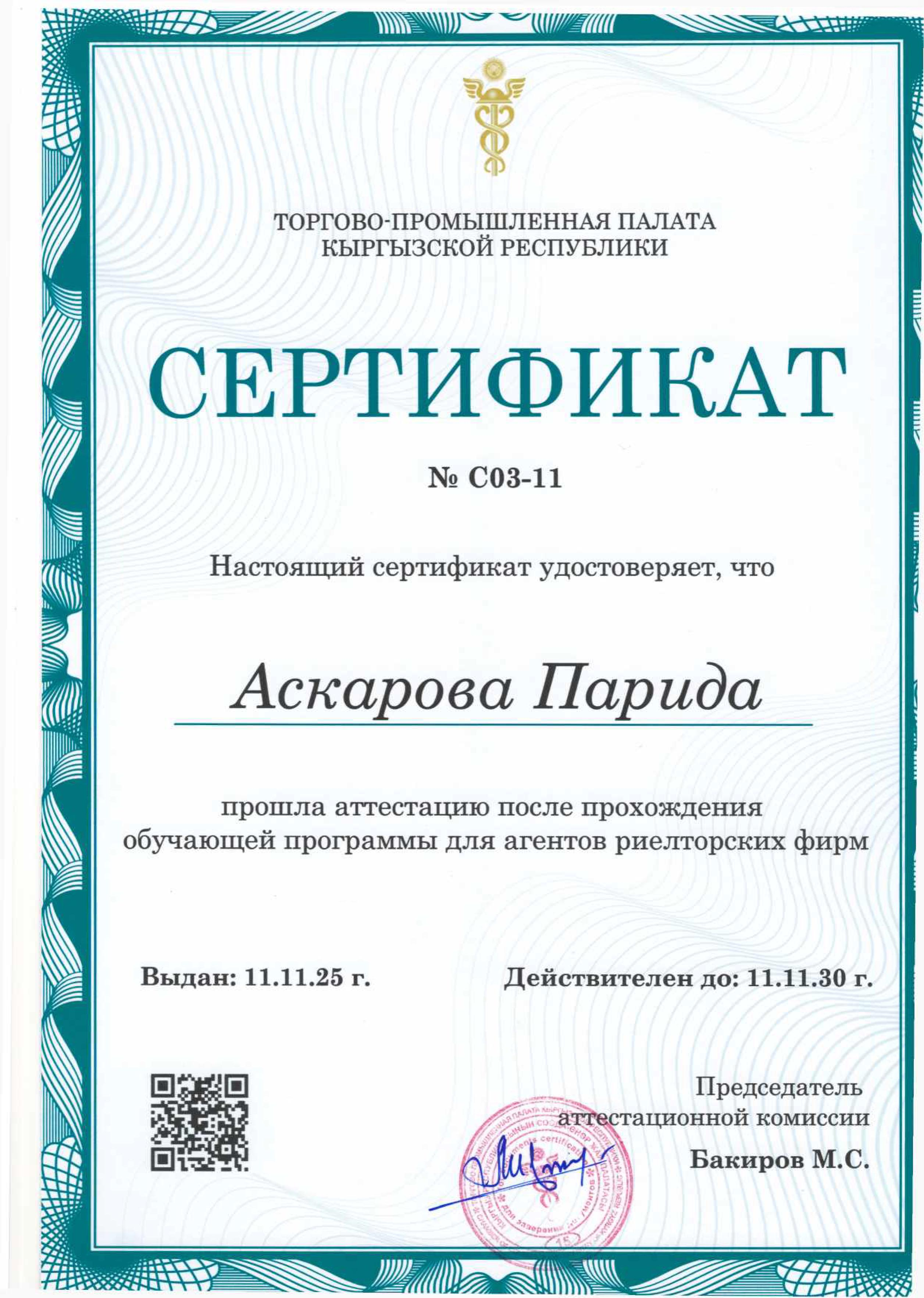 Регистрационный номер сертификата о прохождении аттестации: № C03-11