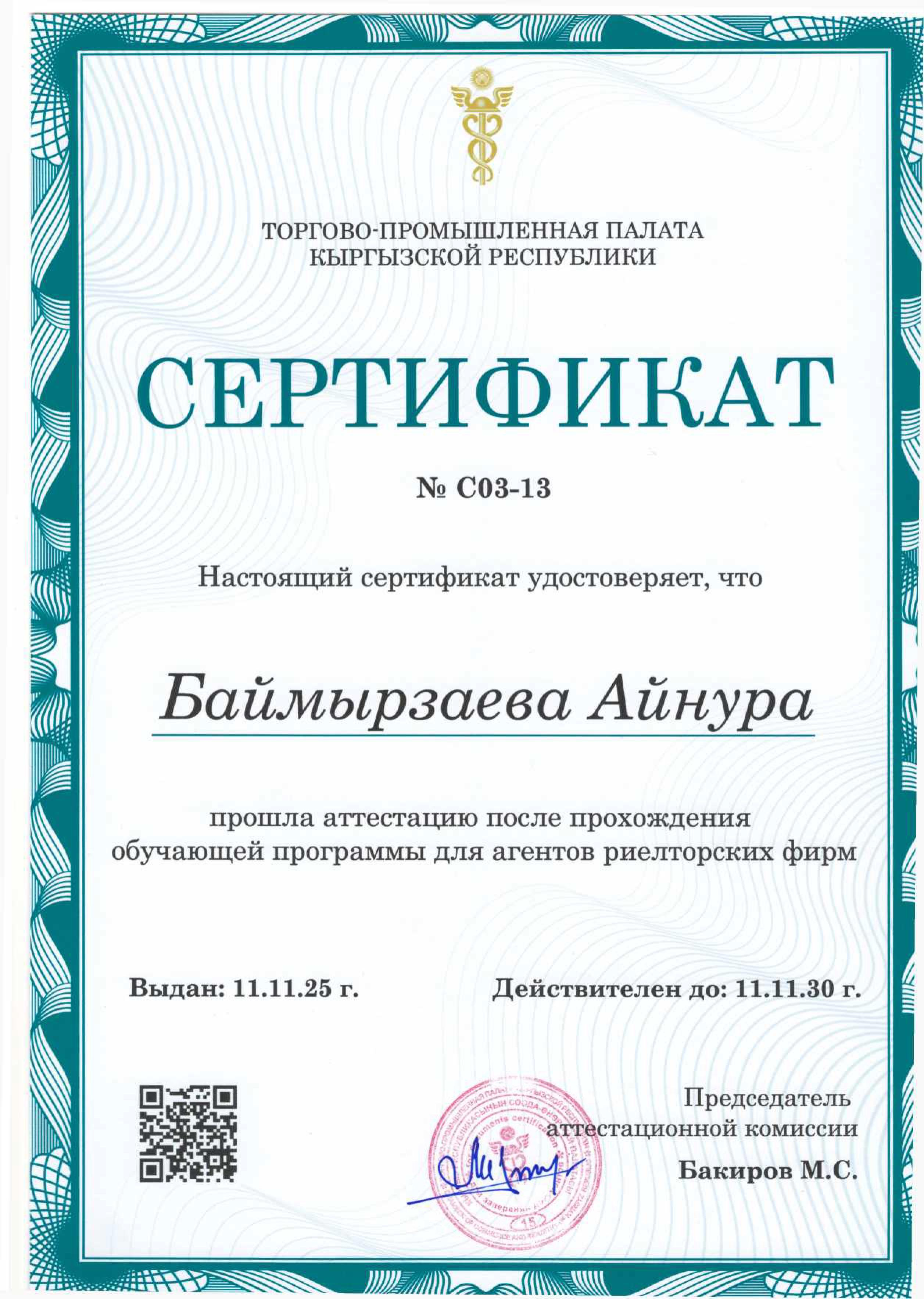 Регистрационный номер сертификата о прохождении аттестации: № C03-13