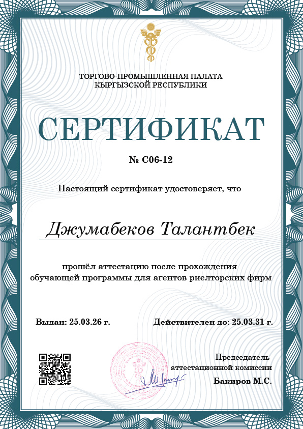 ФИО: Джумабеков Талантбек Бактыбекович