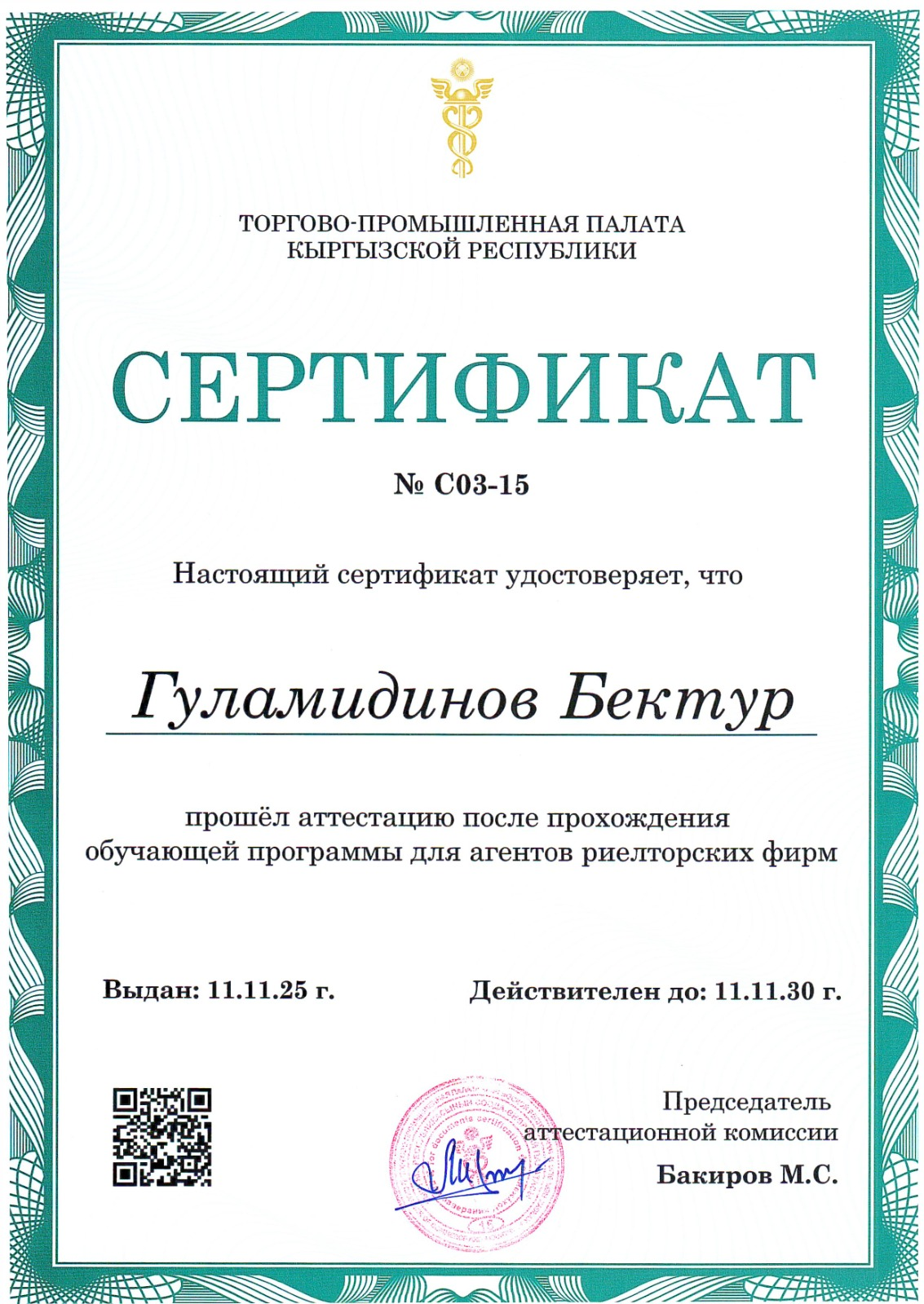 Регистрационный номер сертификата о прохождении аттестации: № C03-15