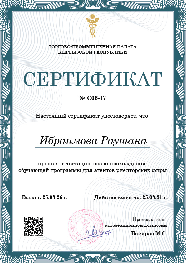 Регистрационный номер сертификата о прохождении аттестации: № C06-17