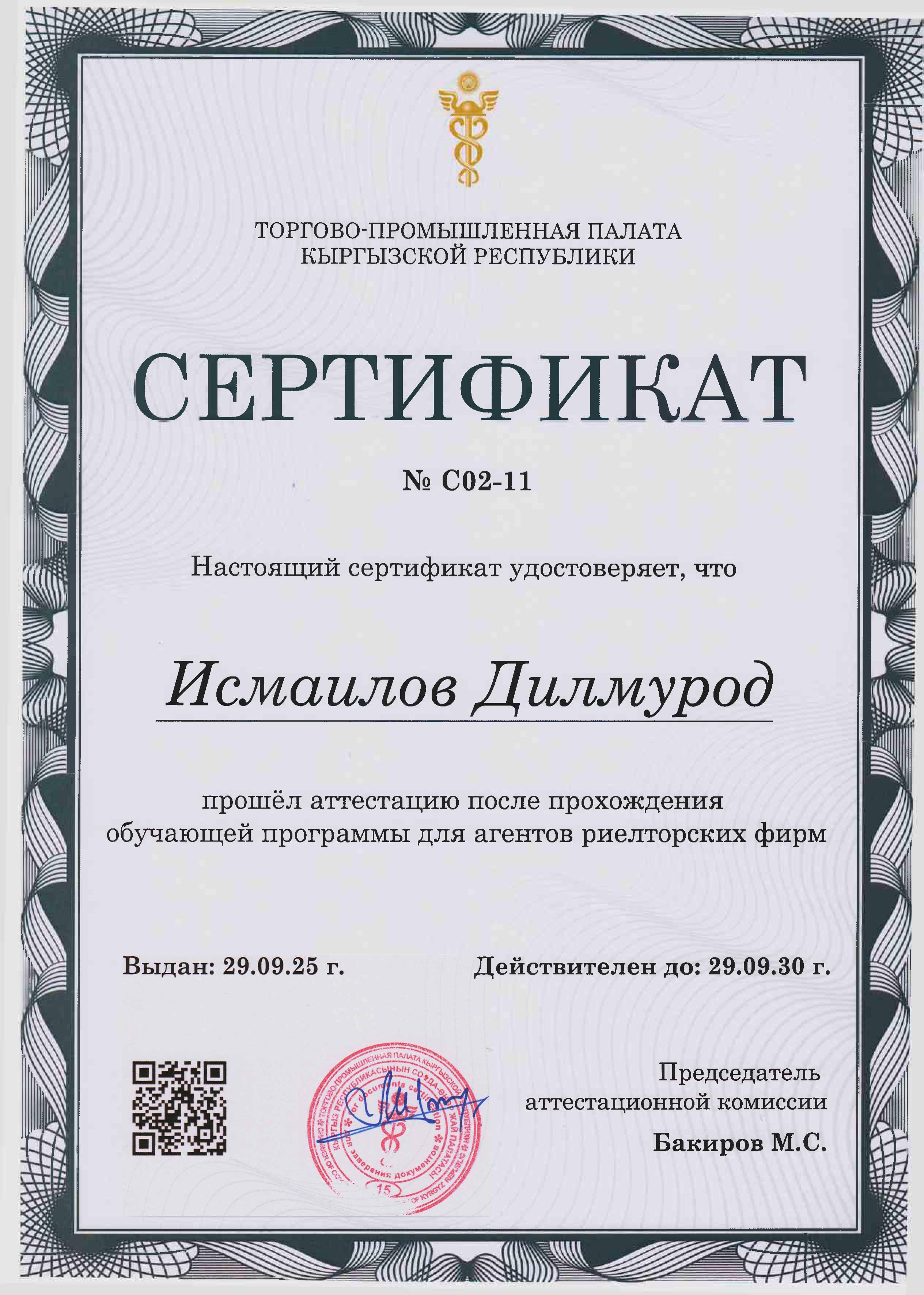 ФИО: Исмаилов Дилмурод Махамадалиевич