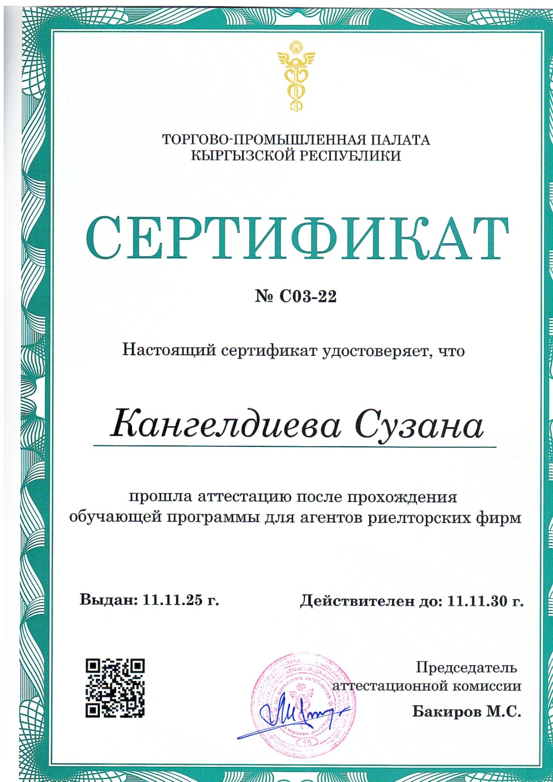 Регистрационный номер сертификата о прохождении аттестации: № C03-22