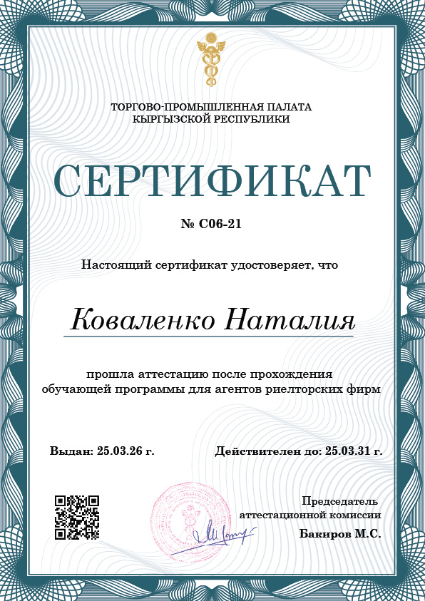 Регистрационный номер сертификата о прохождении аттестации: № C06-21