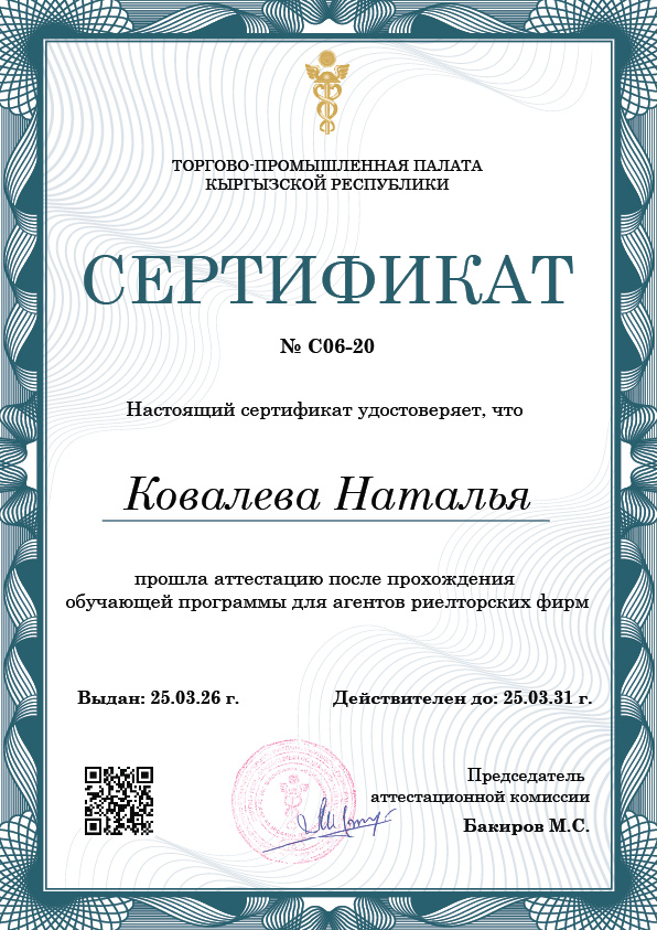 Регистрационный номер сертификата о прохождении аттестации: № C06-20