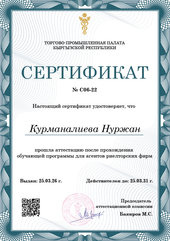 ФИО: Курманалиева Нуржан Джолдошбековна