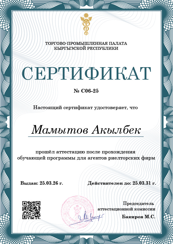 Регистрационный номер сертификата о прохождении аттестации: № C06-25