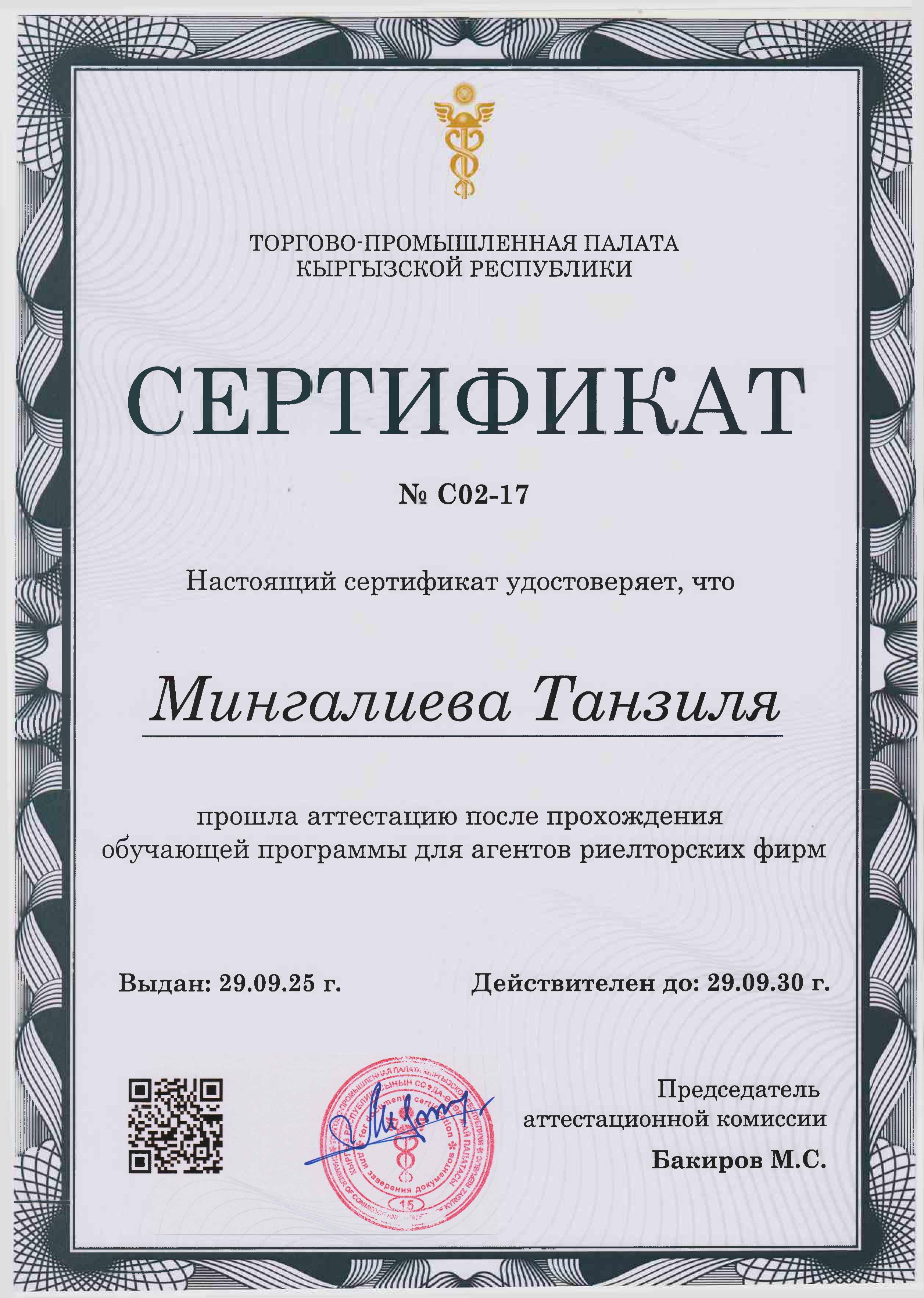 Регистрационный номер сертификата о прохождении аттестации: № C02-17