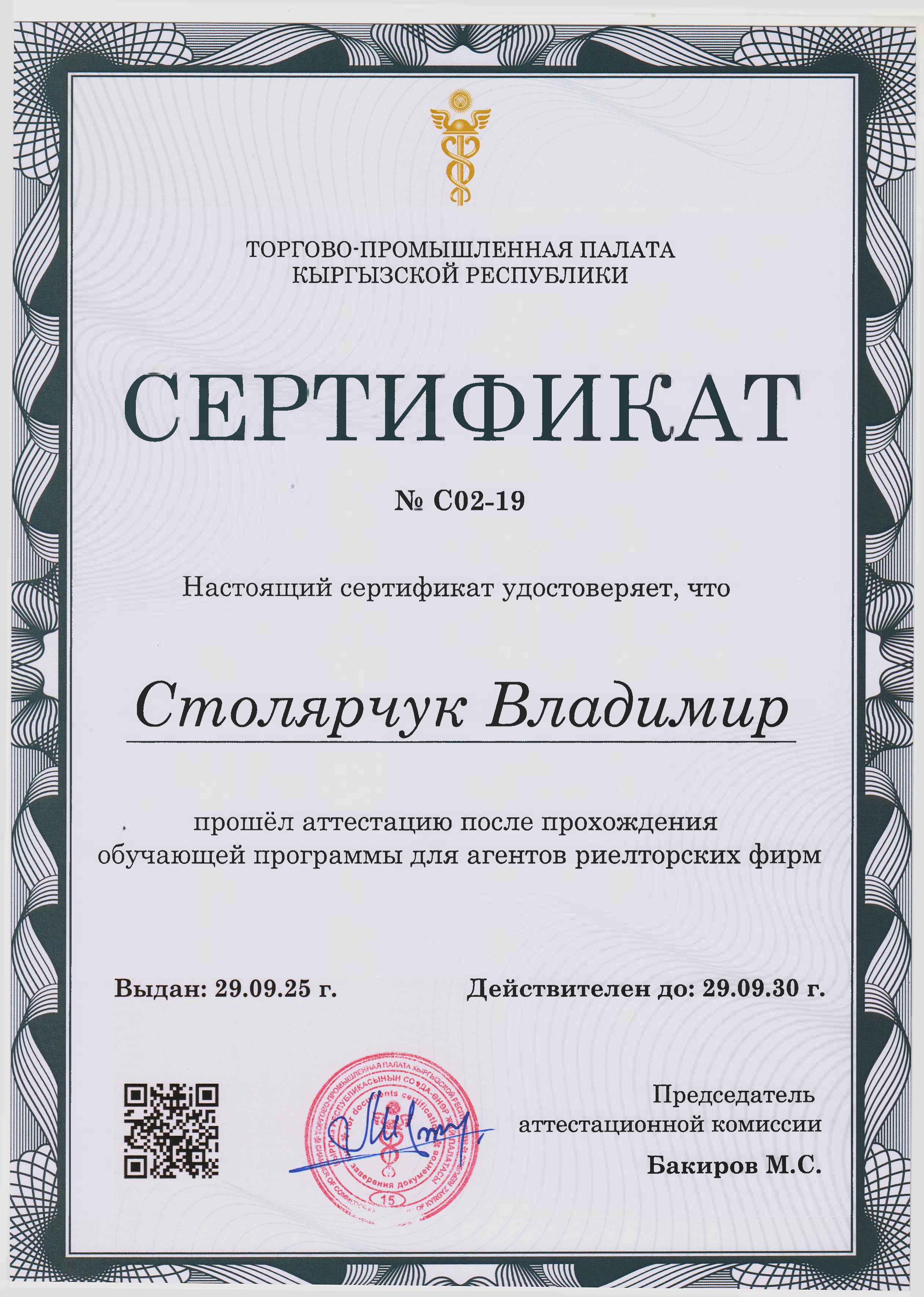 Регистрационный номер сертификата о прохождении аттестации: № C02-19