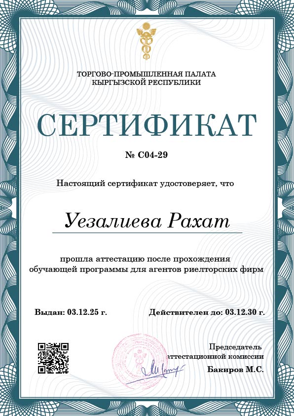 Регистрационный номер сертификата о прохождении аттестации: № C04-29