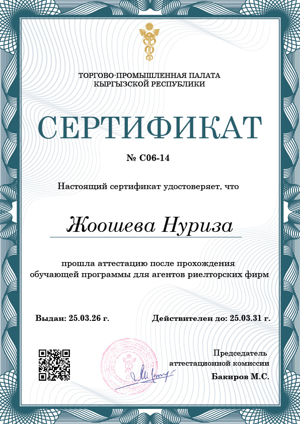 Регистрационный номер сертификата о прохождении аттестации: № C06-14