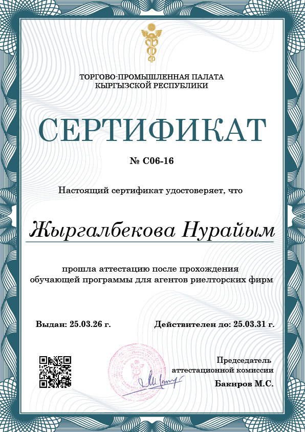 ФИО: Жыргалбекова Нурайым Жыргалбековна