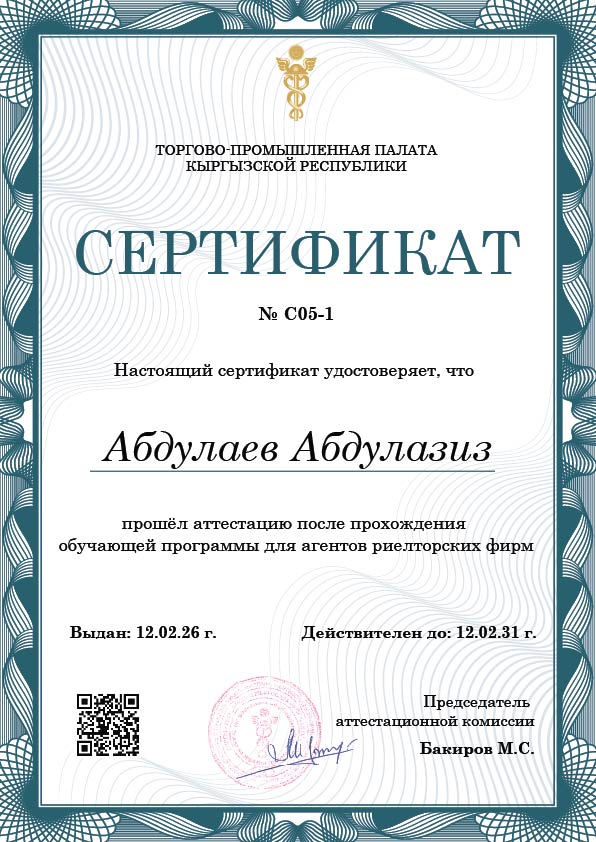 Регистрационный номер сертификата о прохождении аттестации: № C05-1