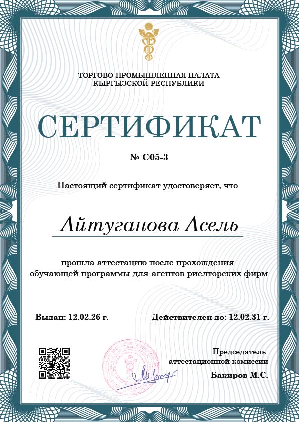 Регистрационный номер сертификата о прохождении аттестации: № C05-3