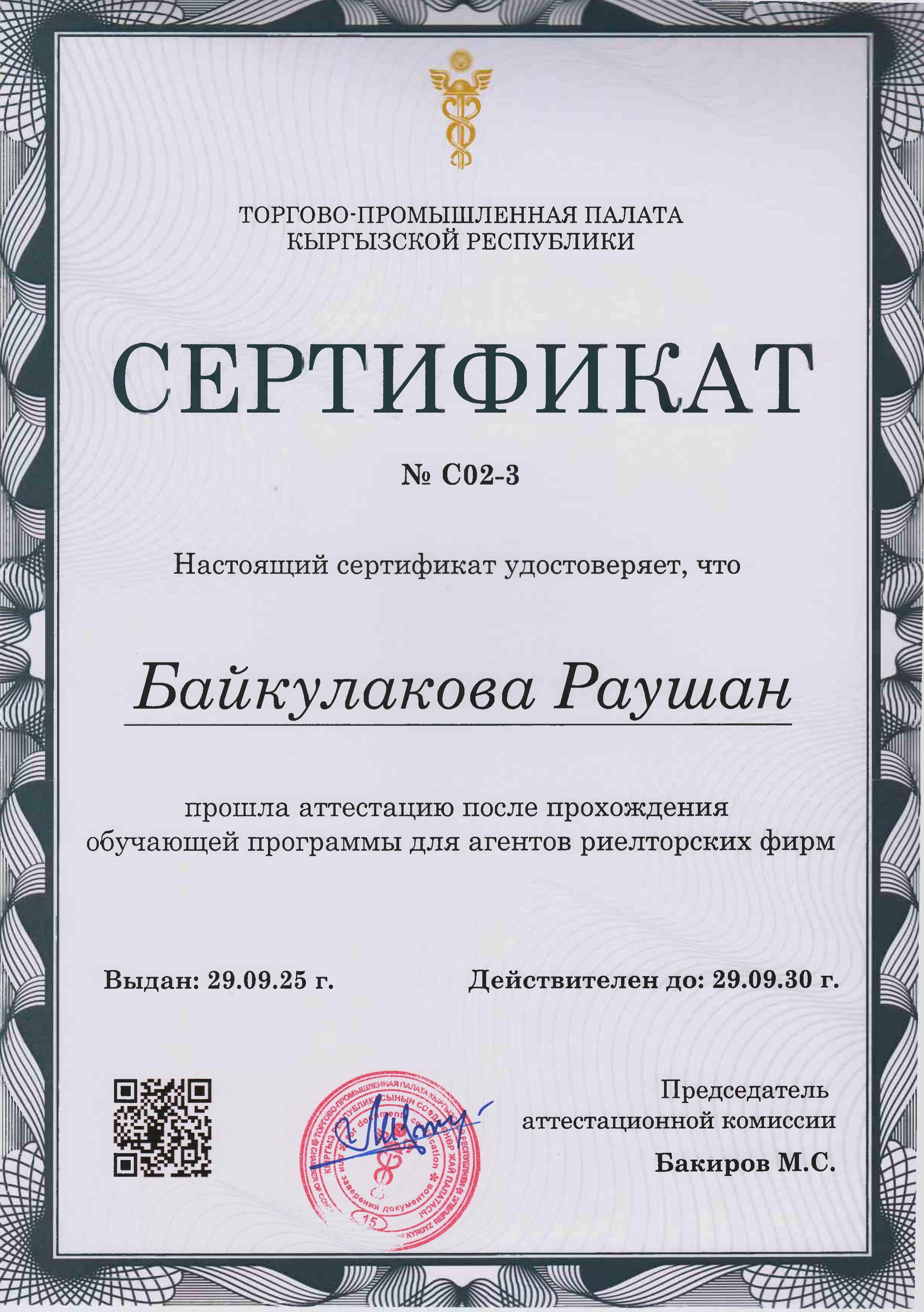 Регистрационный номер сертификата о прохождении аттестации: № C02-3