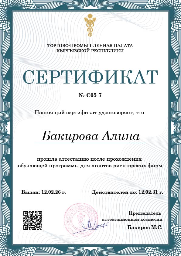 ФИО: Бакирова Алина Мамасадыковна