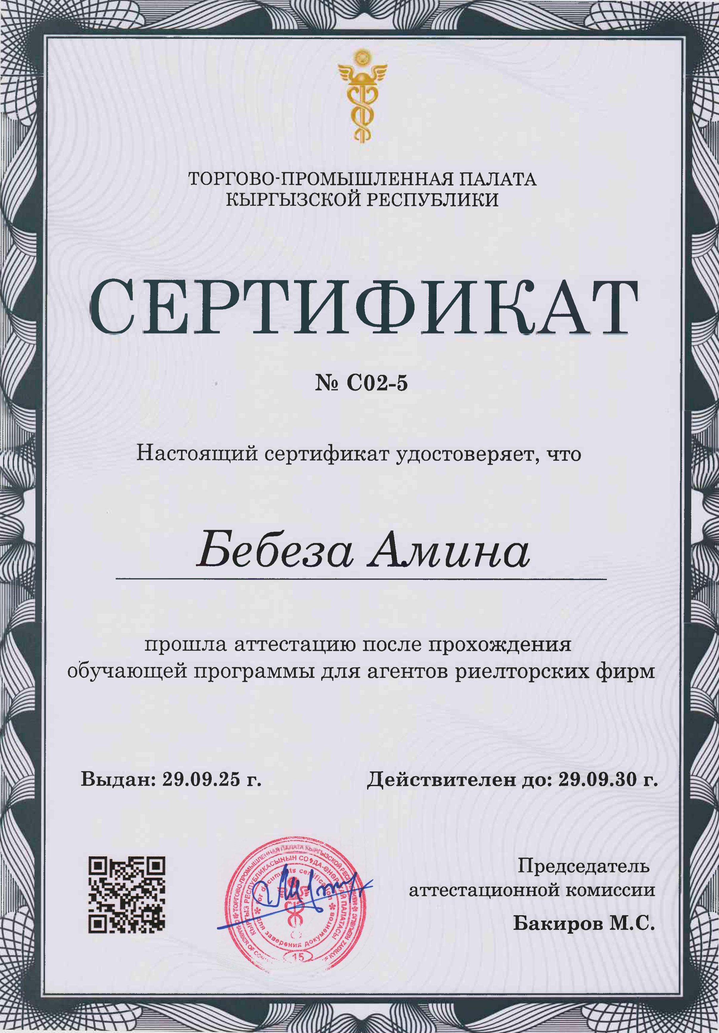 Регистрационный номер сертификата о прохождении аттестации: № C02-5