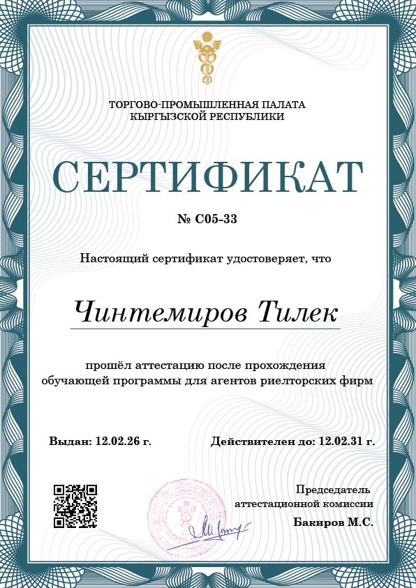 Регистрационный номер сертификата о прохождении аттестации: № C05-33