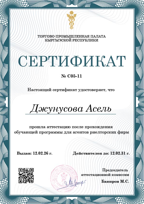 Регистрационный номер сертификата о прохождении аттестации: № C05-11
