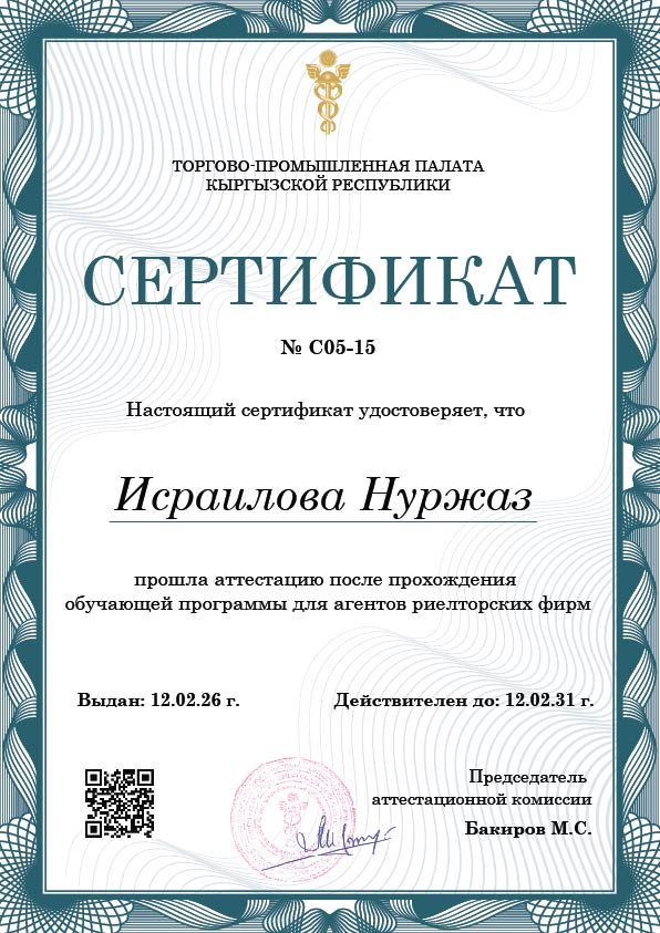 Регистрационный номер сертификата о прохождении аттестации: № C05-15