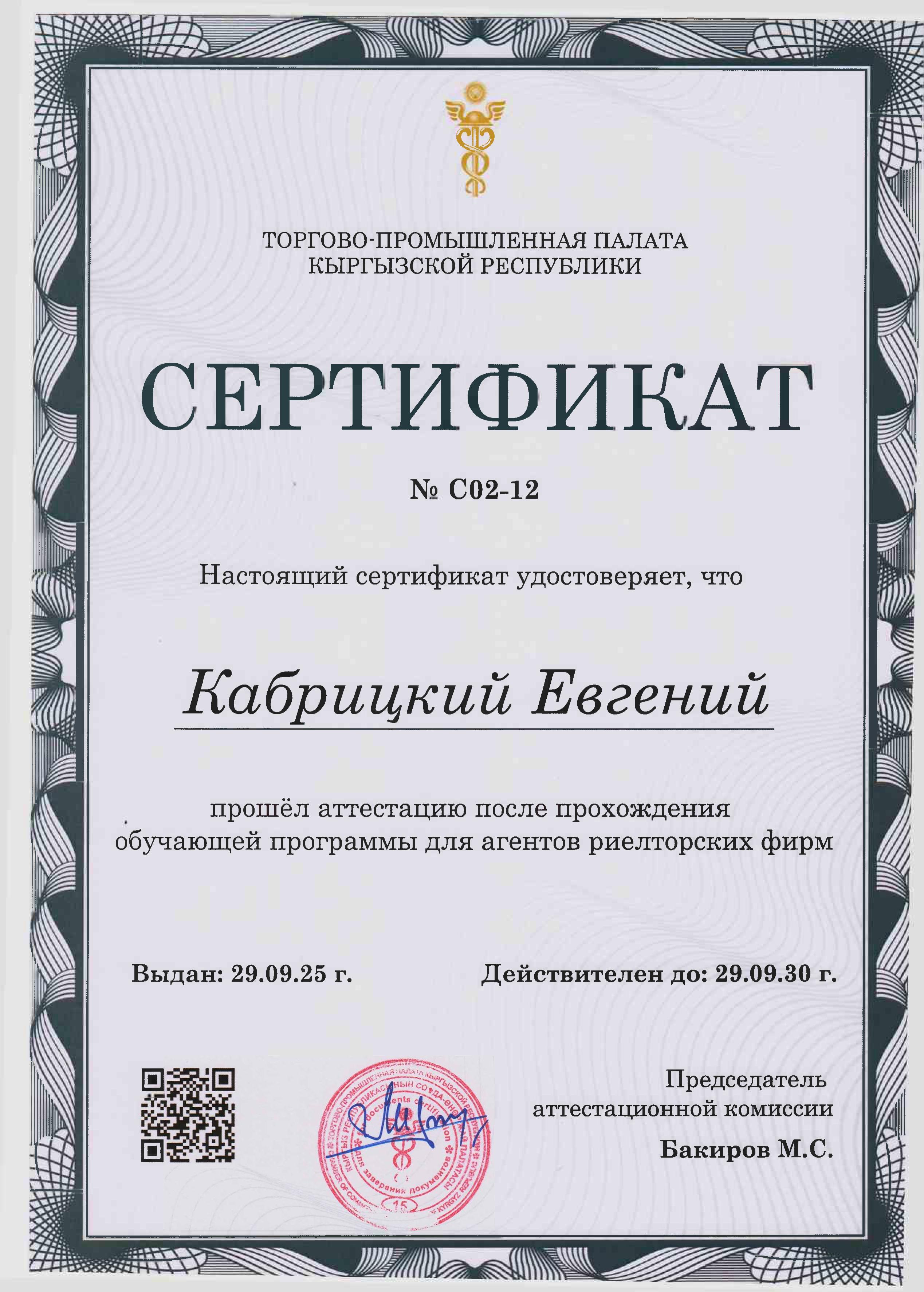 Регистрационный номер сертификата о прохождении аттестации: № C02-12