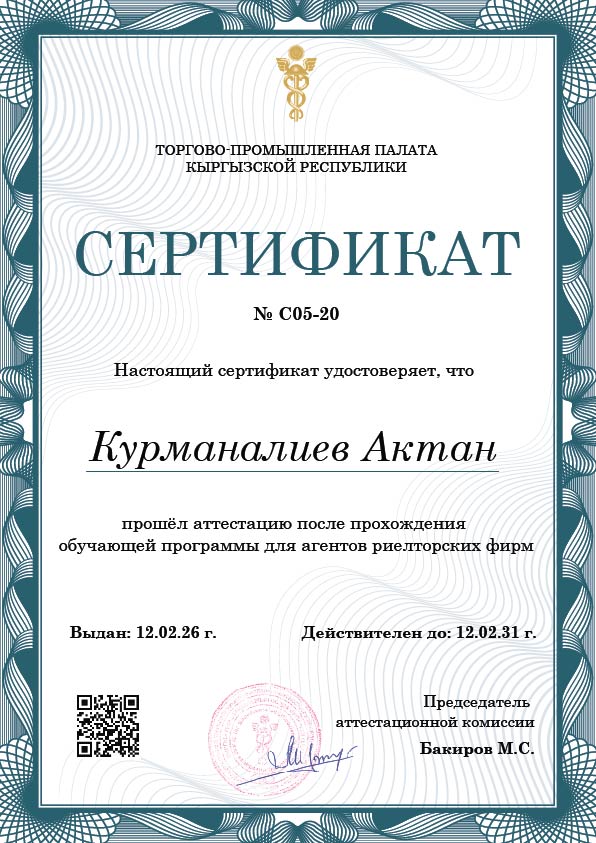 Регистрационный номер сертификата о прохождении аттестации: № C05-20