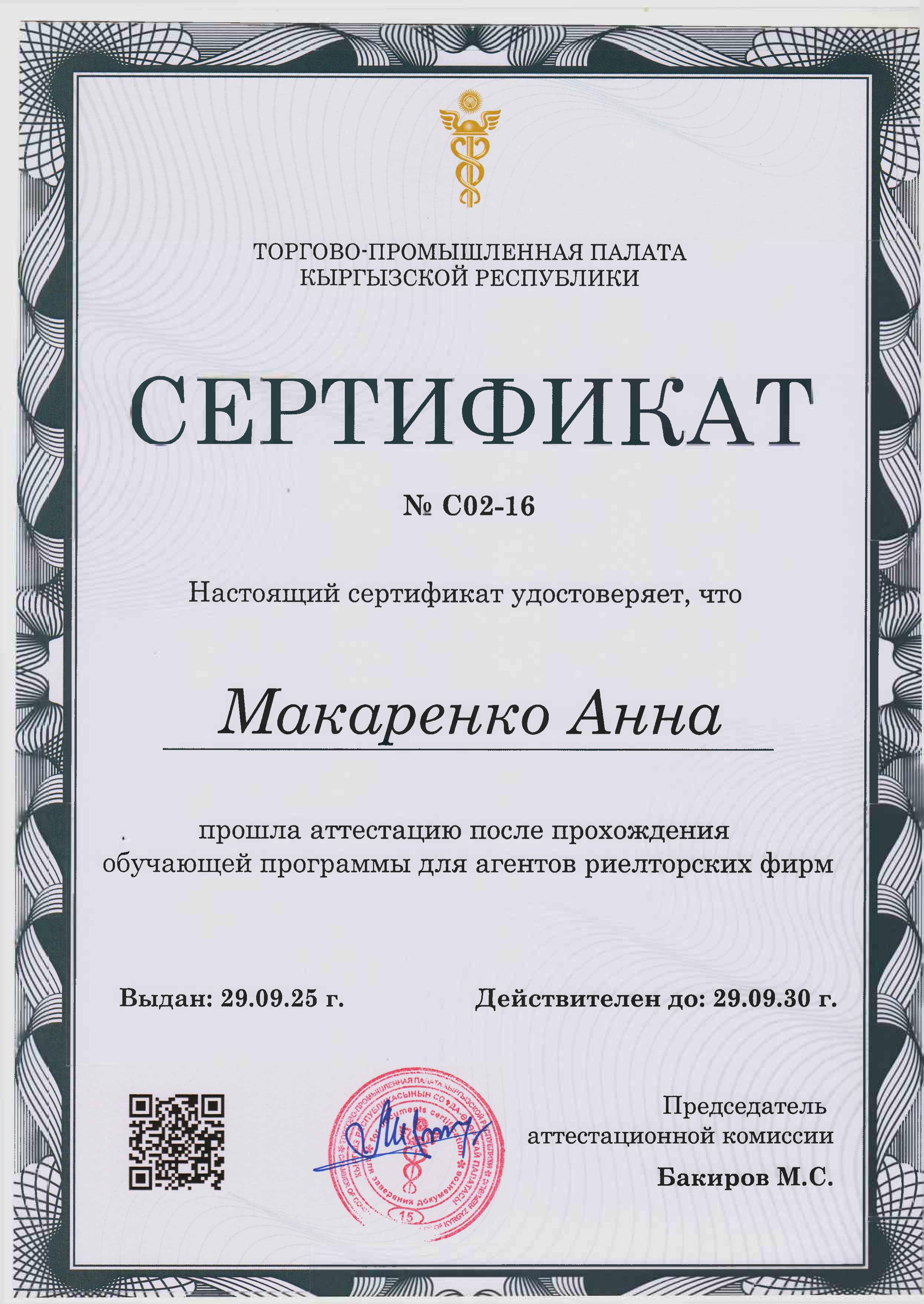Регистрационный номер сертификата о прохождении аттестации: № C02-16