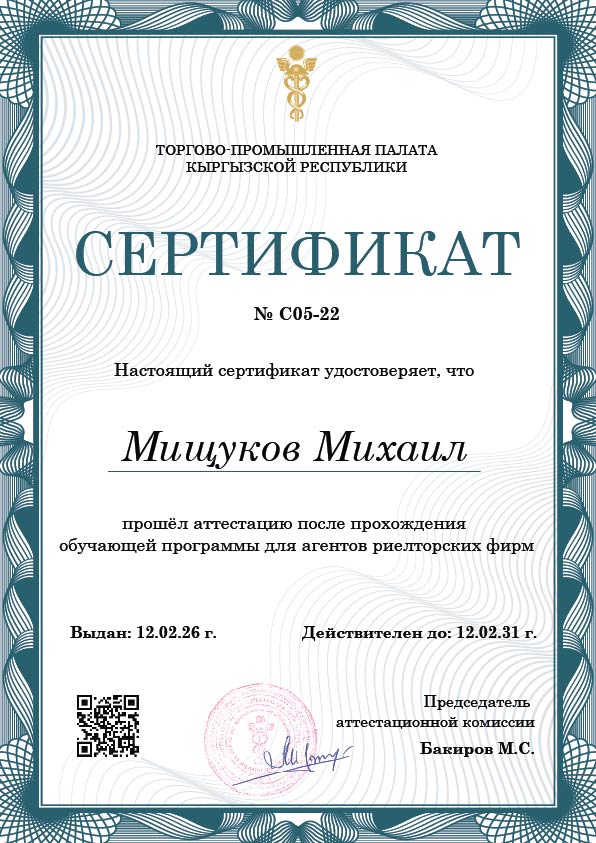 Регистрационный номер сертификата о прохождении аттестации: № C05-22
