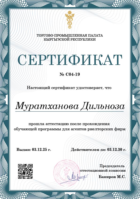 Регистрационный номер сертификата о прохождении аттестации: № C04-19