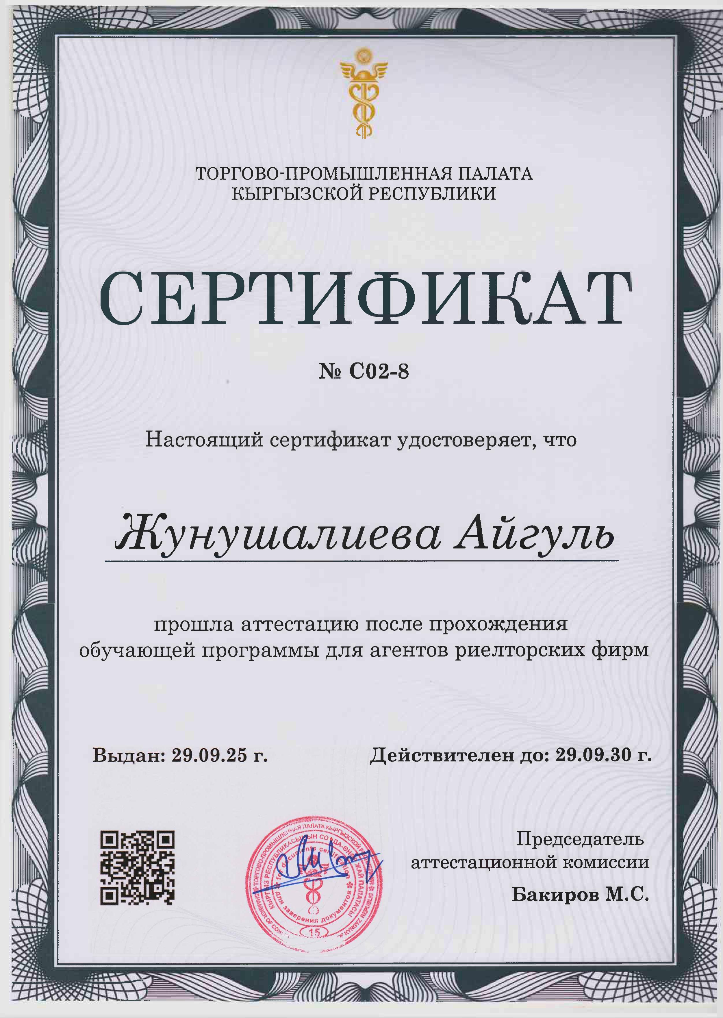 Регистрационный номер сертификата о прохождении аттестации: № C02-8